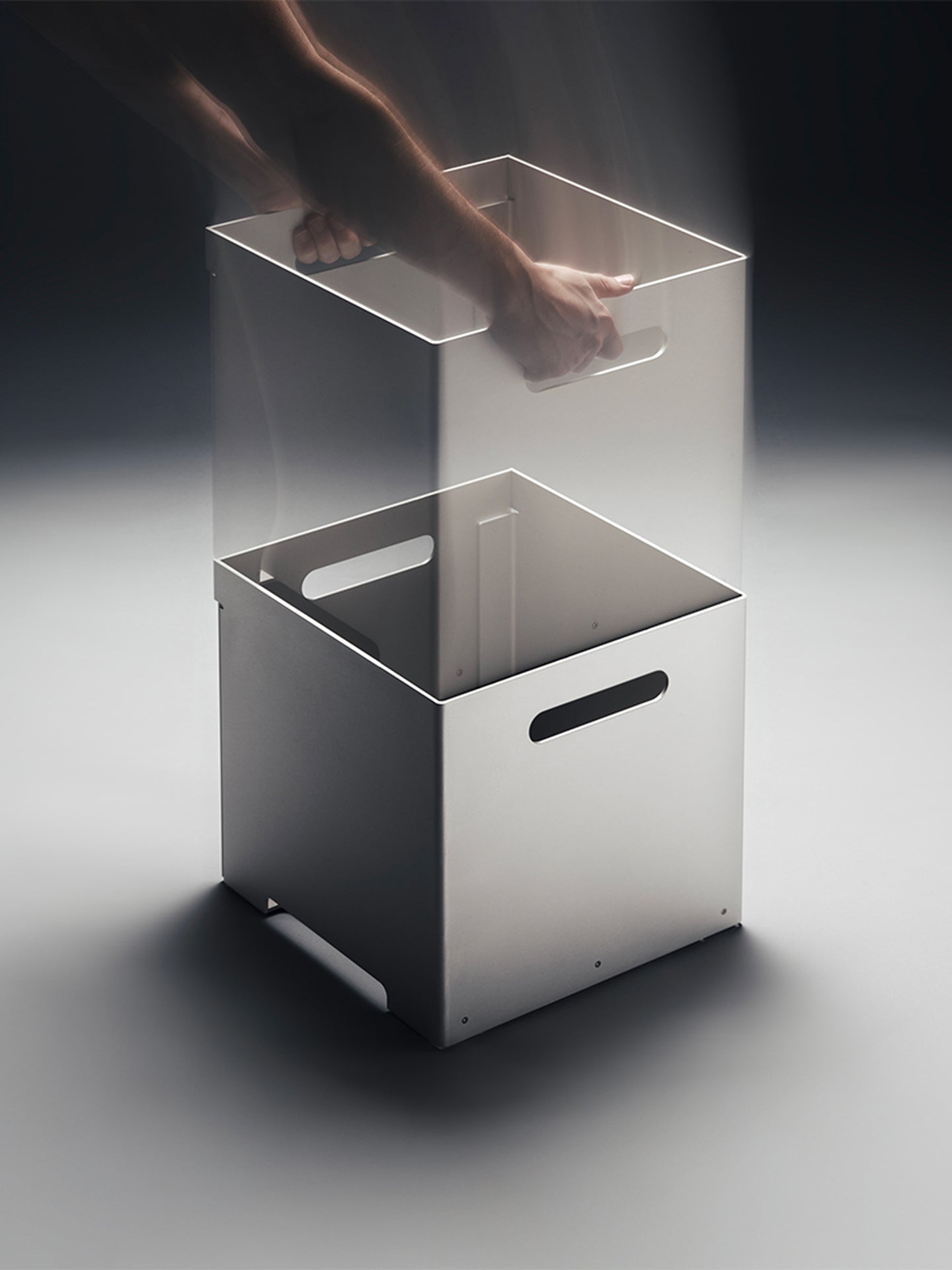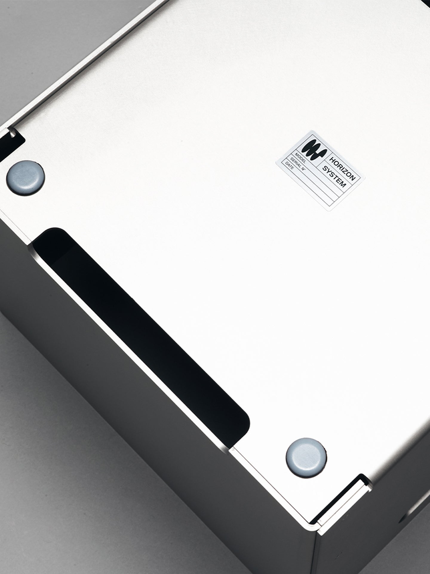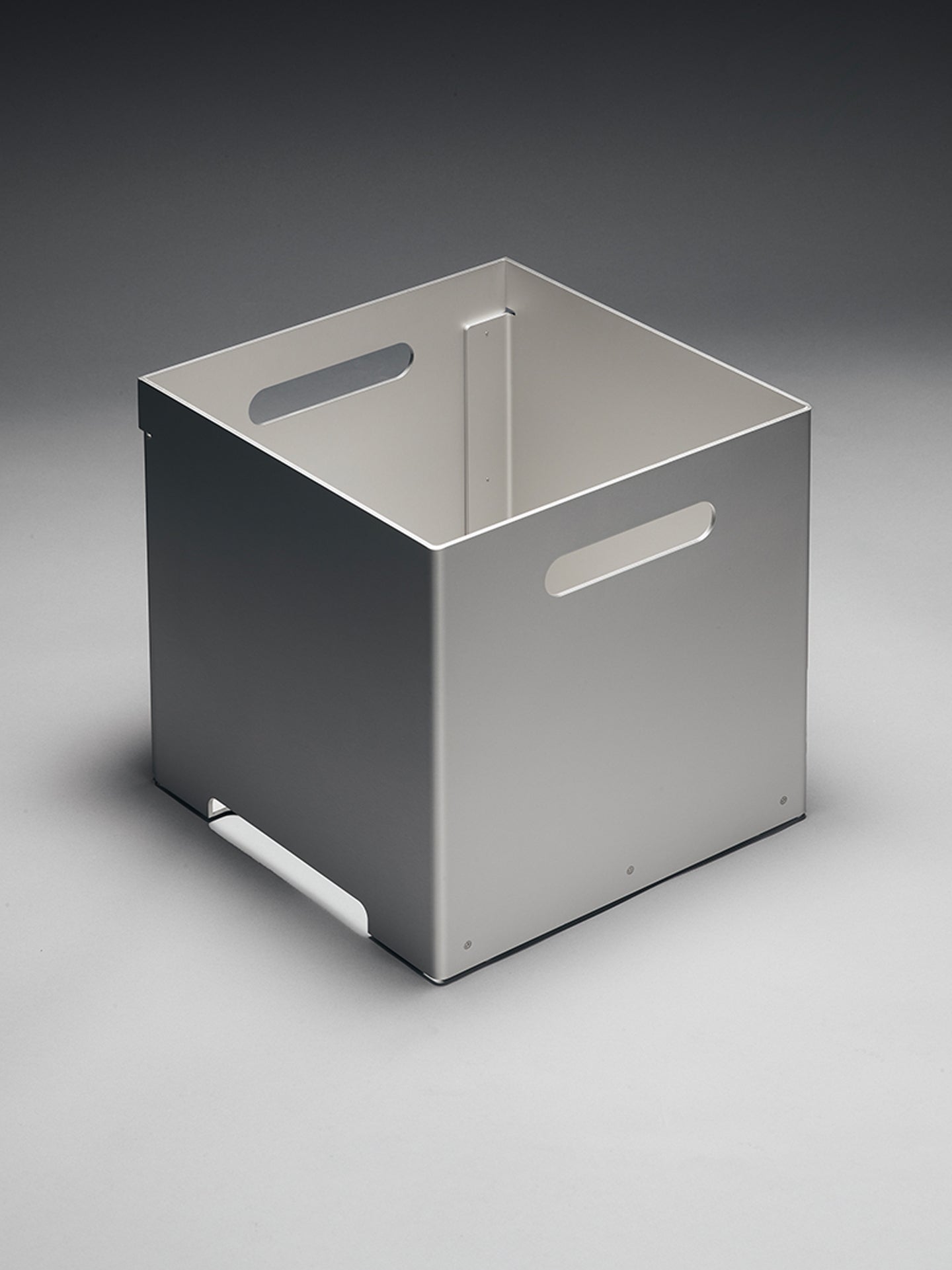 The Record B1 by Horizon System is a numbered vinyl crate crafted in Paris from two folded anodized aluminium plates. Designed to hold over 75 records, it combines strength, minimal design, and stackable form. Produced in small batches of 10 units every 3 months, built to last and age beautifully.