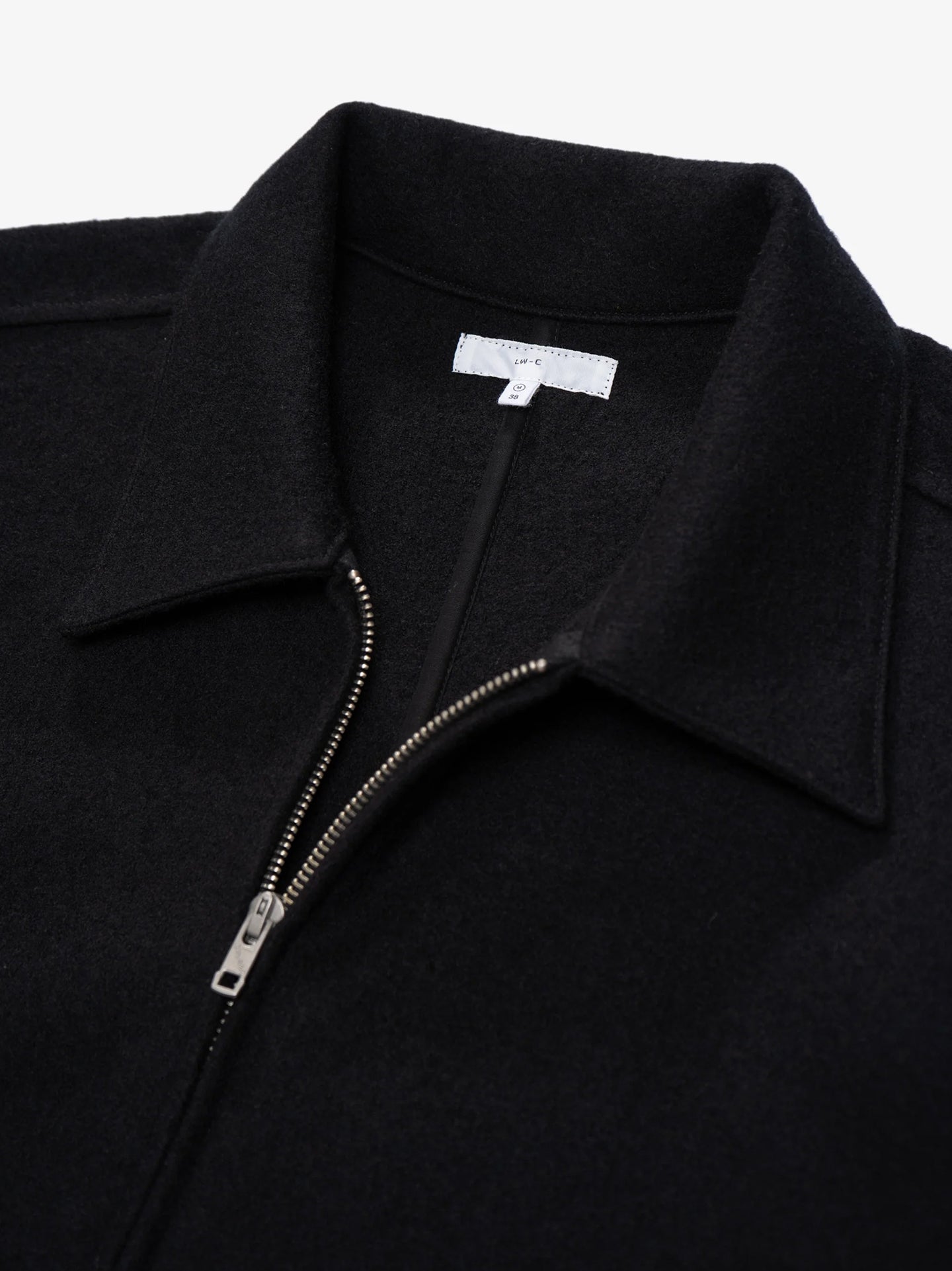 Lady White Co. Loma Blouson in Black crafted from 100% wool knit. Cropped fit with zip front, patch pockets and pointed collar. Made in LA.