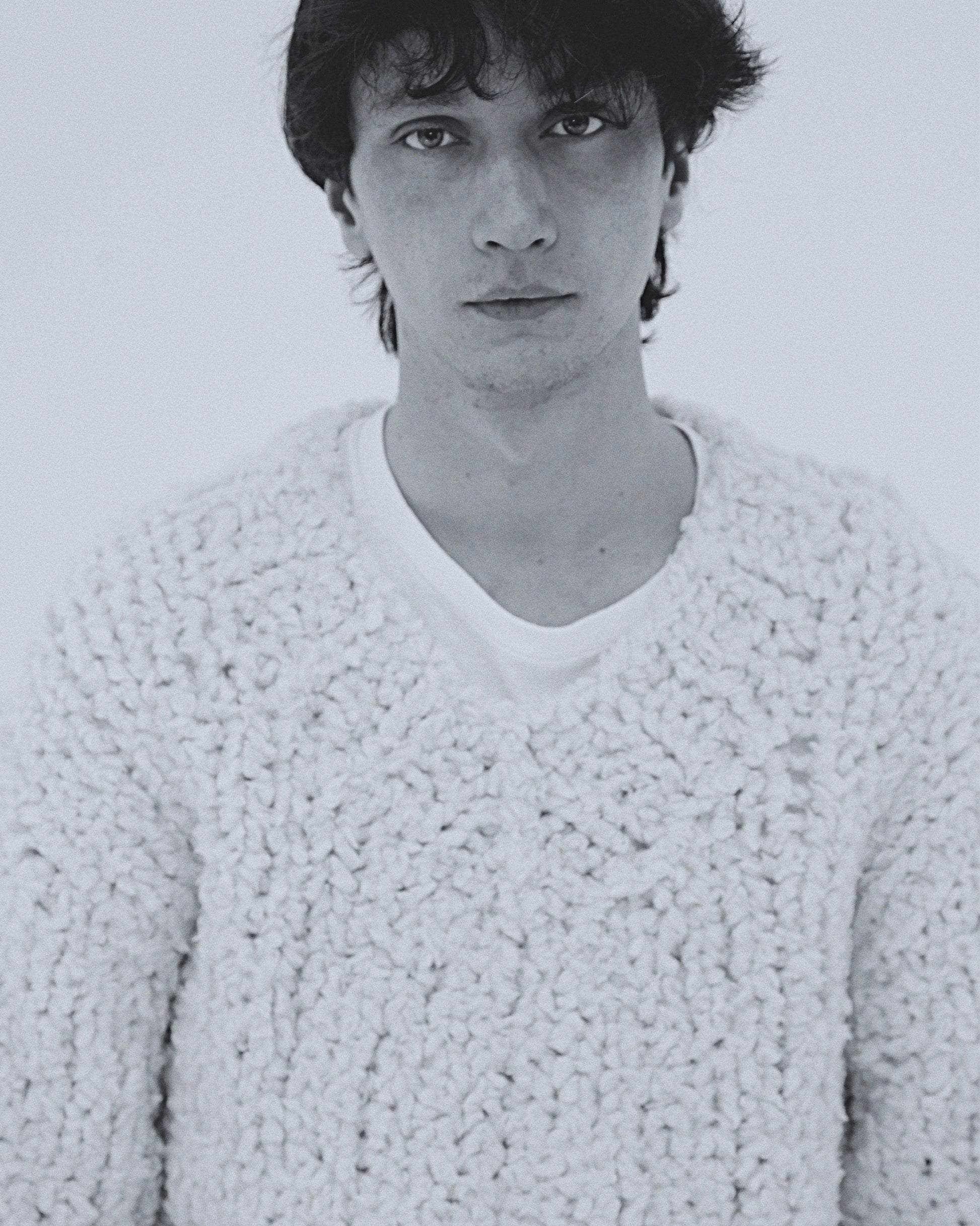 Inspired by the Icelandic Lopi sweater once worn by Apollo researchers, this knit is crafted by hand from unspun cashmere yarn reinforced with silk thread. Following 19th-century traditions, the unspun fibers create irregular textures that make each piece unique. The result is a sweater that is lightweight yet exceptionally warm, balancing historical craft with modern refinement.